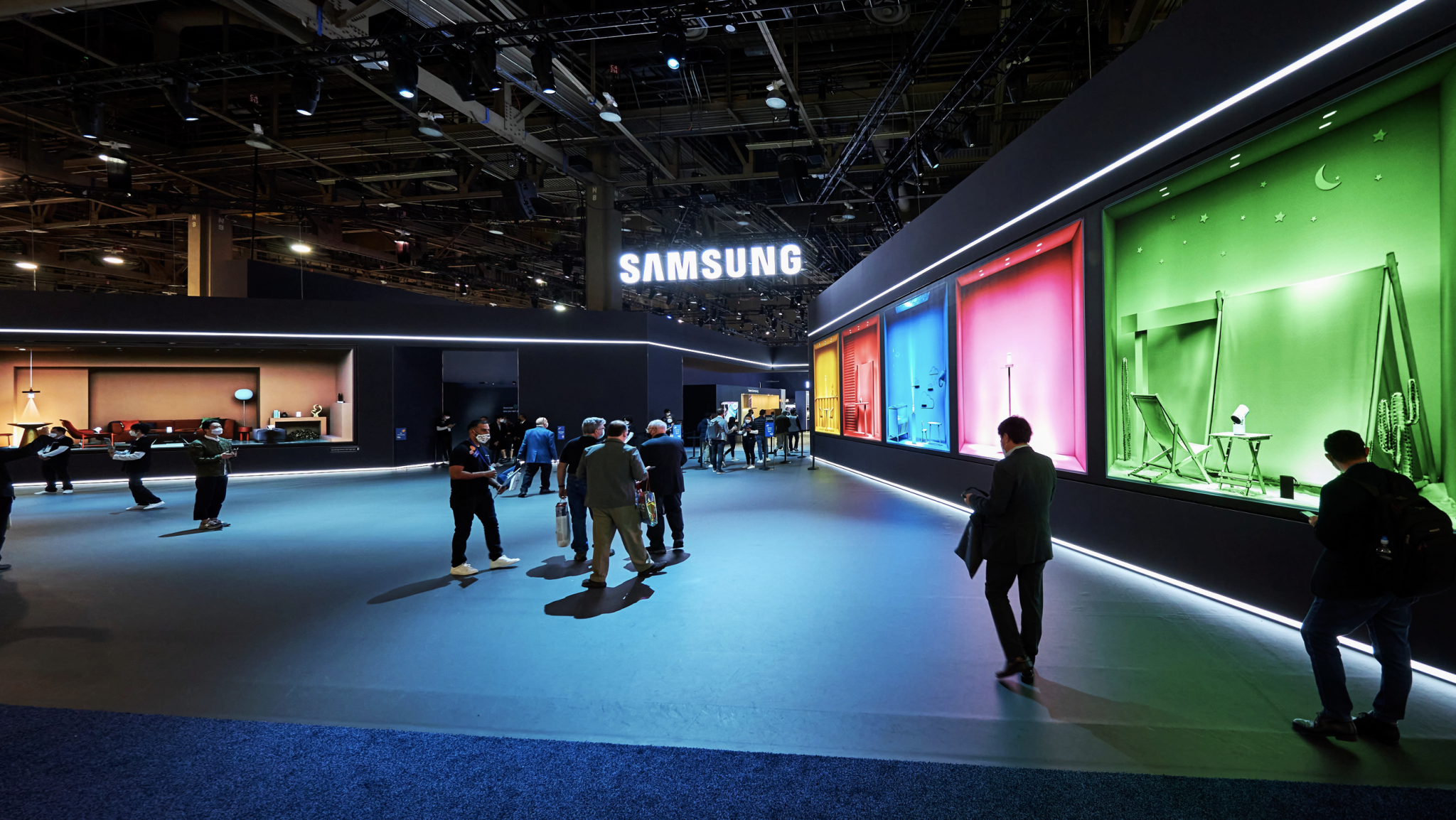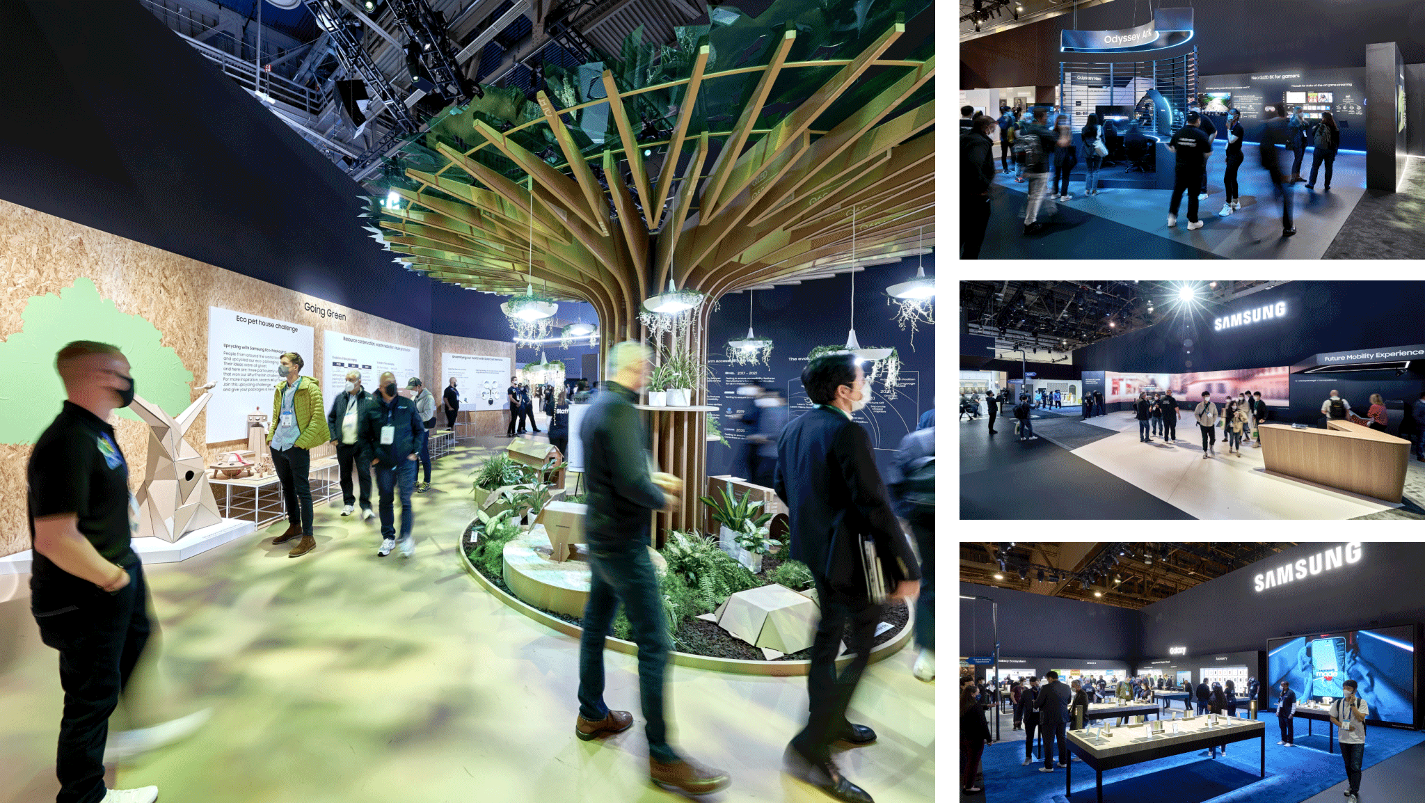 Samsung’s show presence, ranked 3rd on EXHIBITOR magazine’s Best of CES list, could not have been accomplished if it weren’t for a successful partnership with Cheil, who provided the exhibit’s design, and NMR Events who supplied the audio and visual components, Fine Design Associates, Inc. providing lighting, and MC² driving the manufacturing, transportation, and installment of the 36,250 sq. ft. exhibit.