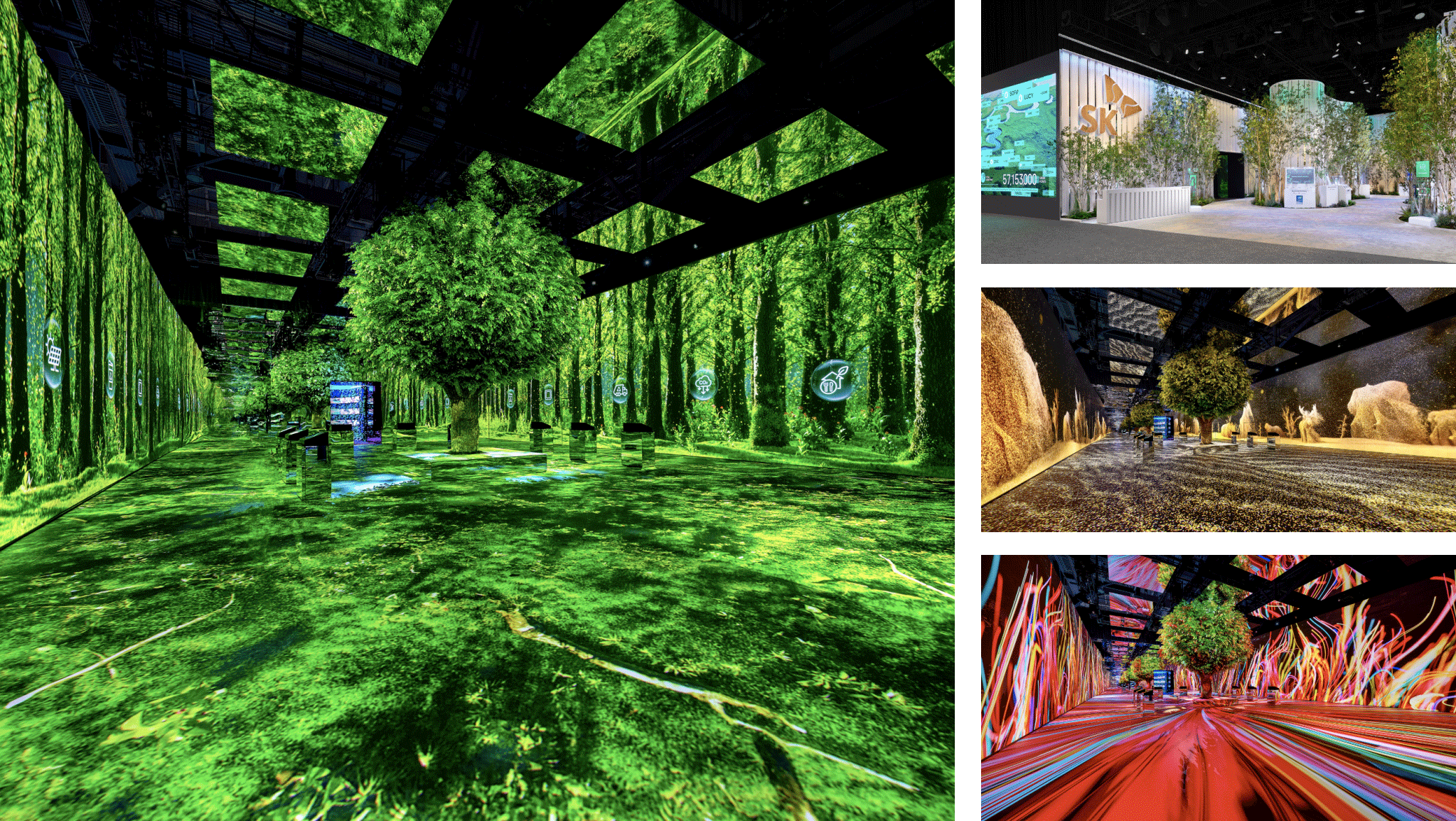 Upon arriving to their Central Hall presence, show attendees were taken through four main zones: The Green Avenue, The Tree of Life, The Walk to Tomorrow, and The Green Playground. The 10,500 sq. ft. exhibit was the talk of the show for many – now justified by EXHIBITOR magazine’s vote of confidence awarding SK Telecom with the top spot for this year’s Best of CES list at #1!