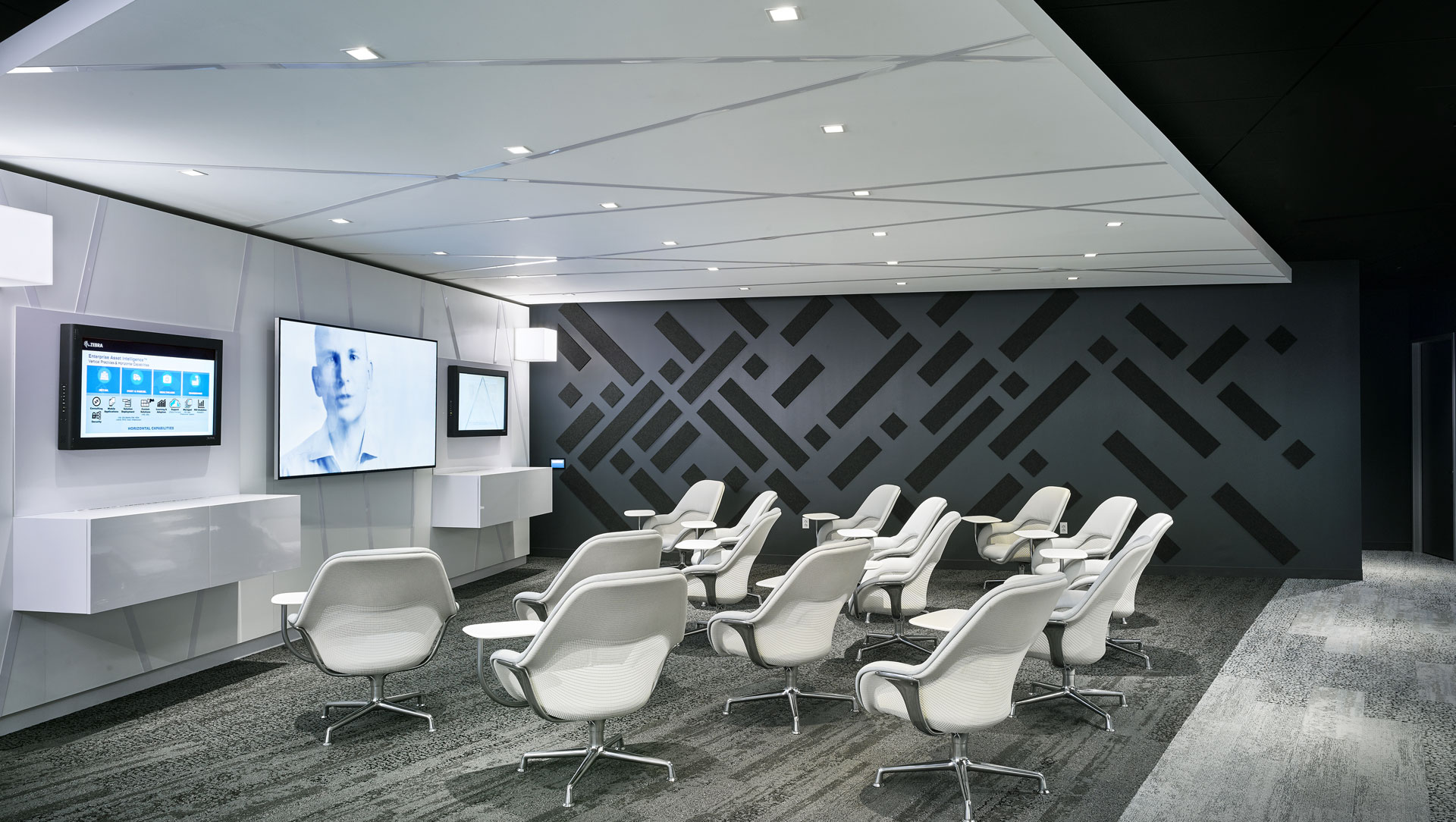 We designed and built a “hub-and-spoke” visitor experience center for Zebra Technologies that enabled customer conversations to transition naturally to the most relevant solutions. Transparent to all sides of the conference room are nine solutions areas, each with Zebra products and services relevant to the visitors' business needs.